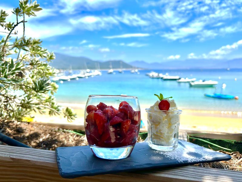 Unser Obst und Gemüse wird sorgfältig bei einem Gemüsebauern in der Region ausgewählt. Das Kalbfleisch wiederum stammt von der unumgänglichen Rinderfarm Abbatucci, die ganz in der Nähe unseres Strandrestaurants liegt; deren Qualität und Ruf weit über die Grenzen der Insel der Schönheit hinausgeht.