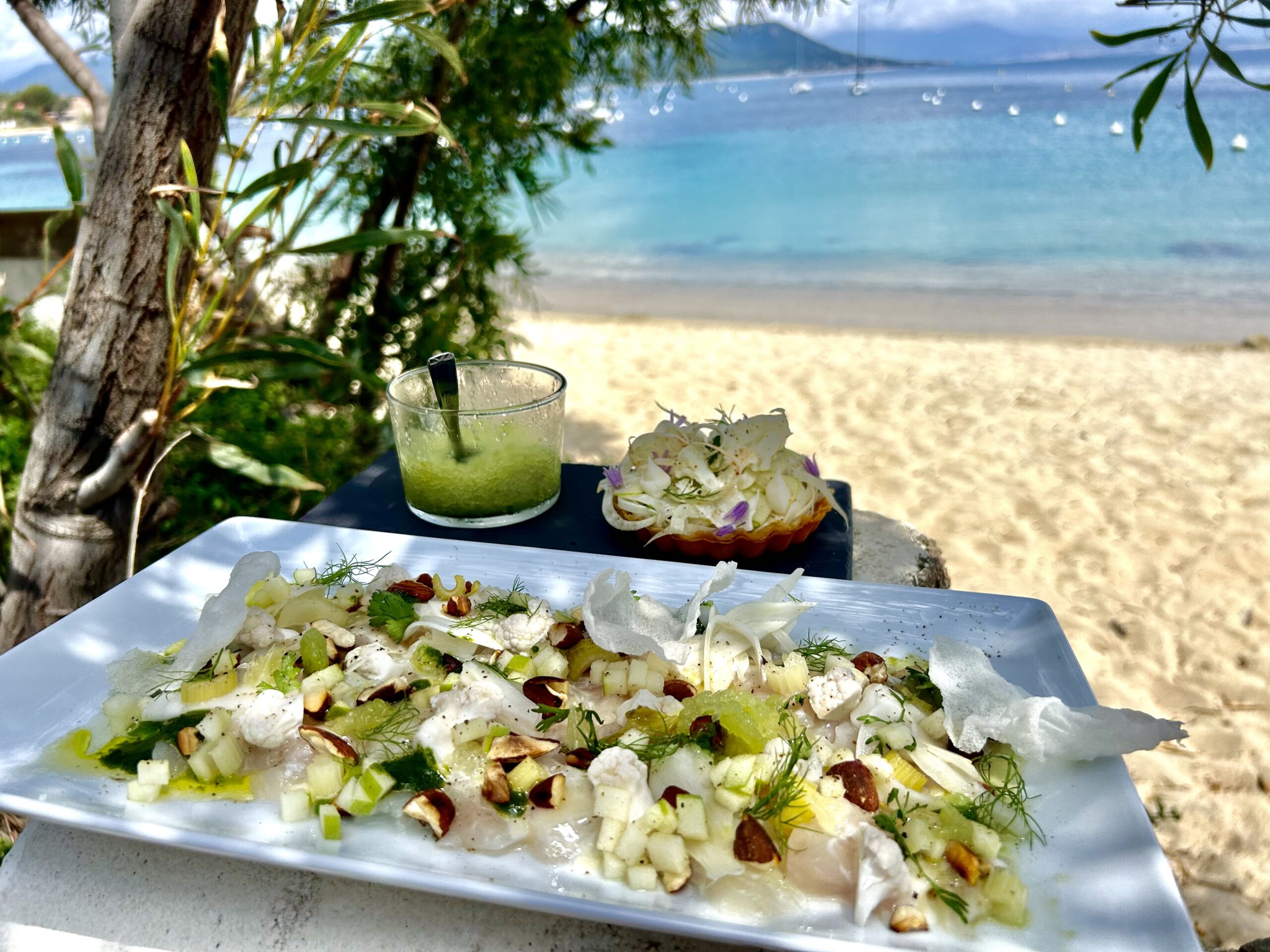 Umgeben vom kristallklaren Wasser des Golfs von Valinco liegt unser Strandrestaurant empfängt Sie in einer stilvolle, gesellige und zugleich entspannte Atmosphäre. Denn unsere 8 Tische verleihen dem Ort eine familiäre und intime Atmosphäre, weit weg vom sommerlichen Touristenrummel.