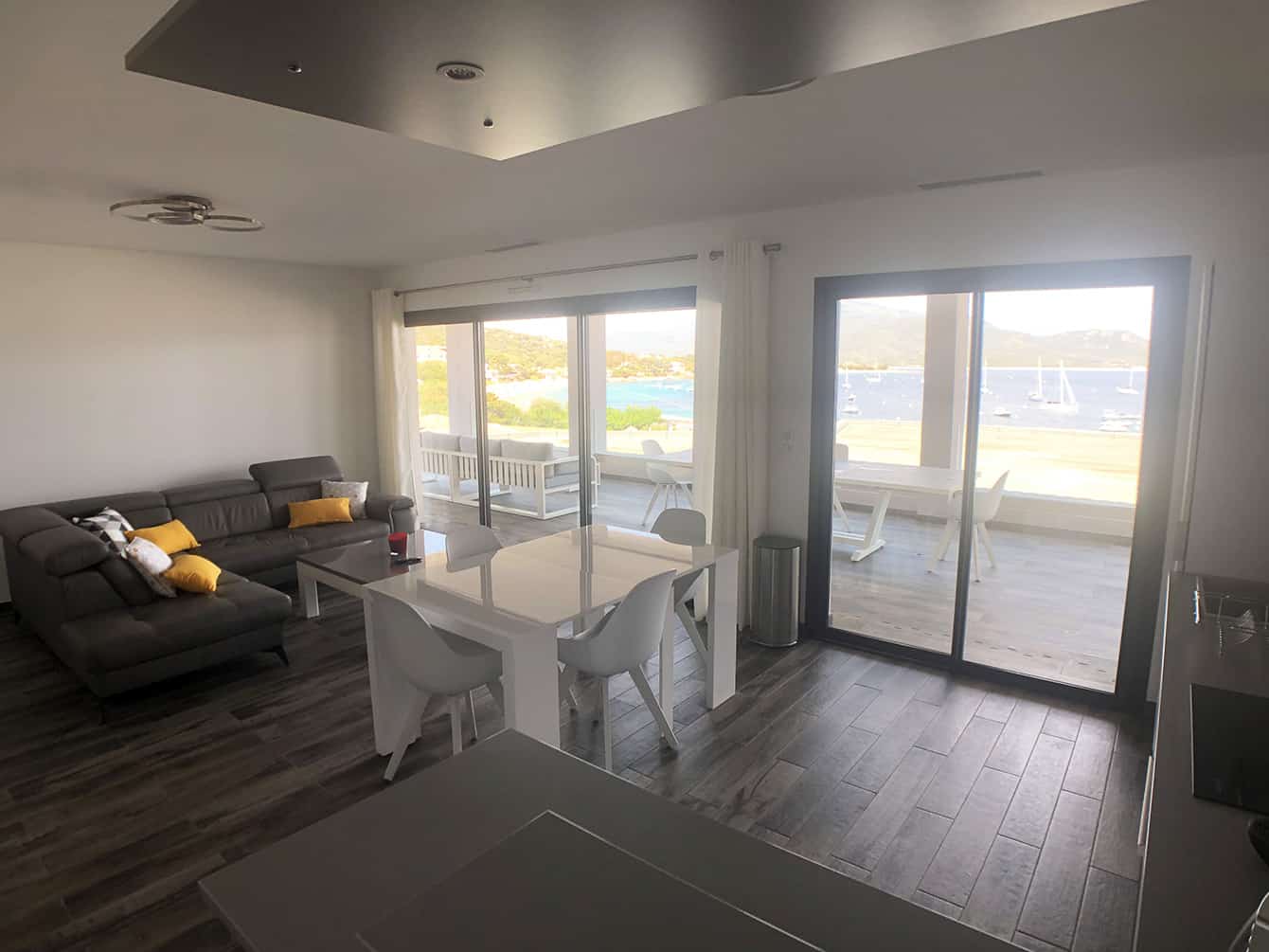 Seine perfekte Lage auf dem Dach der Capriona-Residenz bietet ungeahnte Ausblicke auf das Meer. Bei der Gestaltung dieser hochwertigen Villa wollten wir unseren Mietern ein Gefühl von absoluter Ruhe und vollkommener Privatsphäre vermitteln. Die Wette ist dank einer zeitgenössischen Architektur, die großen, schlichten und zart bepflanzten Räumen den Vorzug gibt, gelungen. Von der Couch in Ihrem Wohnzimmer aus erstreckt sich das Meer, soweit das Auge reicht. Während der belebte Strand von Porto-Pollo unter Ihren Füßen liegt, hängen Sie an dieser Wohlfühlblase, die durch nichts getrübt werden kann.