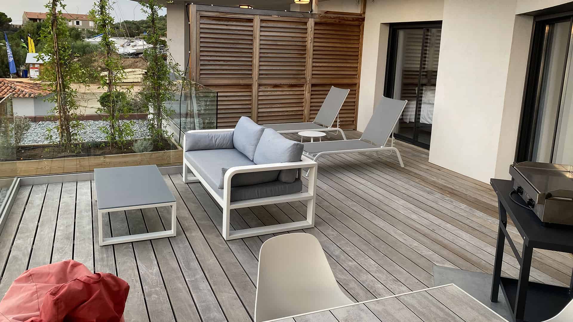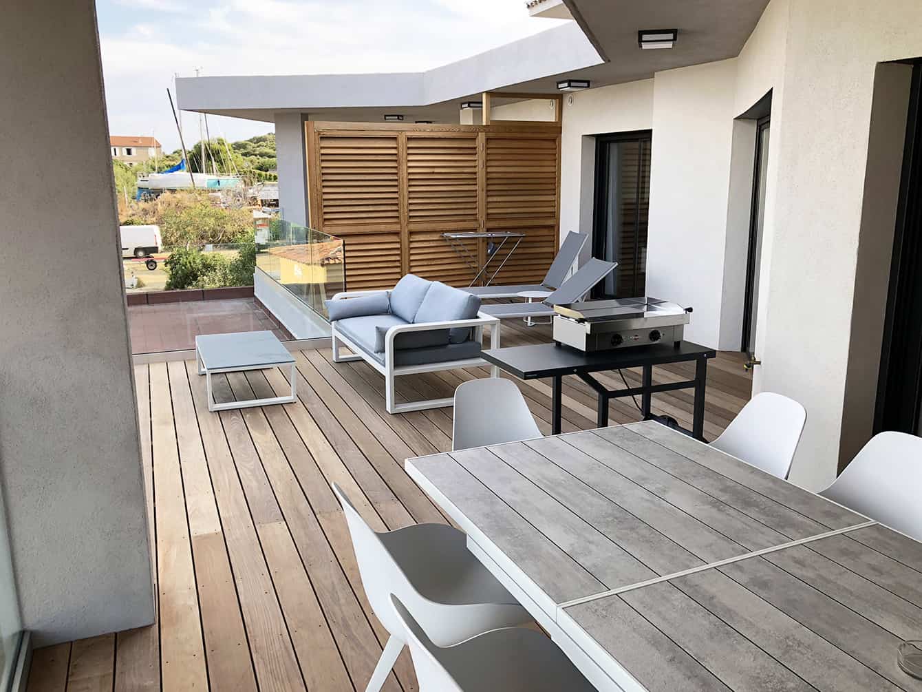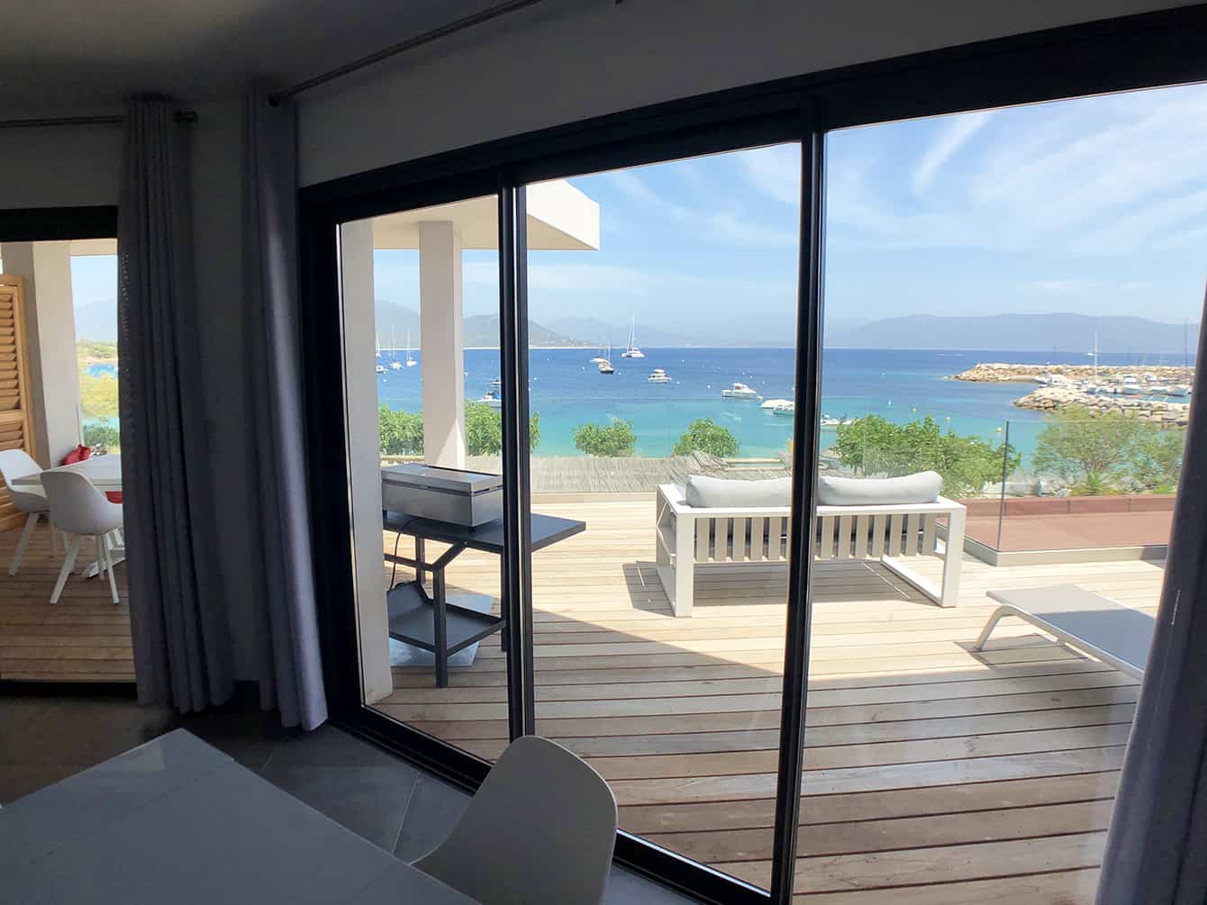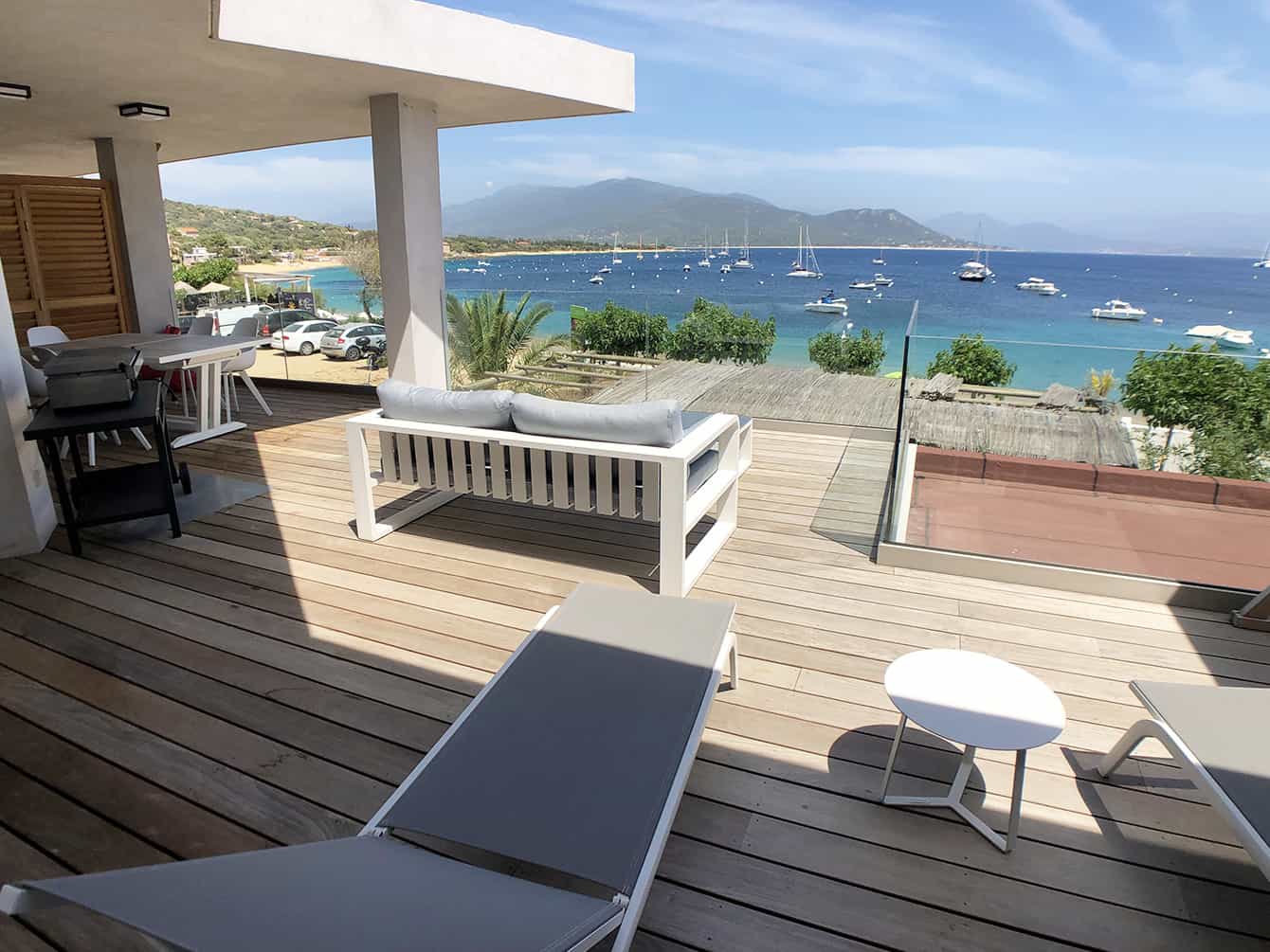 In questo appartamento F4 non ci sono extra, solo l’essenziale, per una vacanza perfetta in Corsica. Ci piace la combinazione di legno sulla grande terrazza di 45 m² e di materiali moderni, selezionati con cura per decorare gli interni. Dal soggiorno alla cucina e alle camere da letto, il Mediterraneo è ovunque! Il mare da solo decora tutti e 4 gli angoli dell’appartamento.