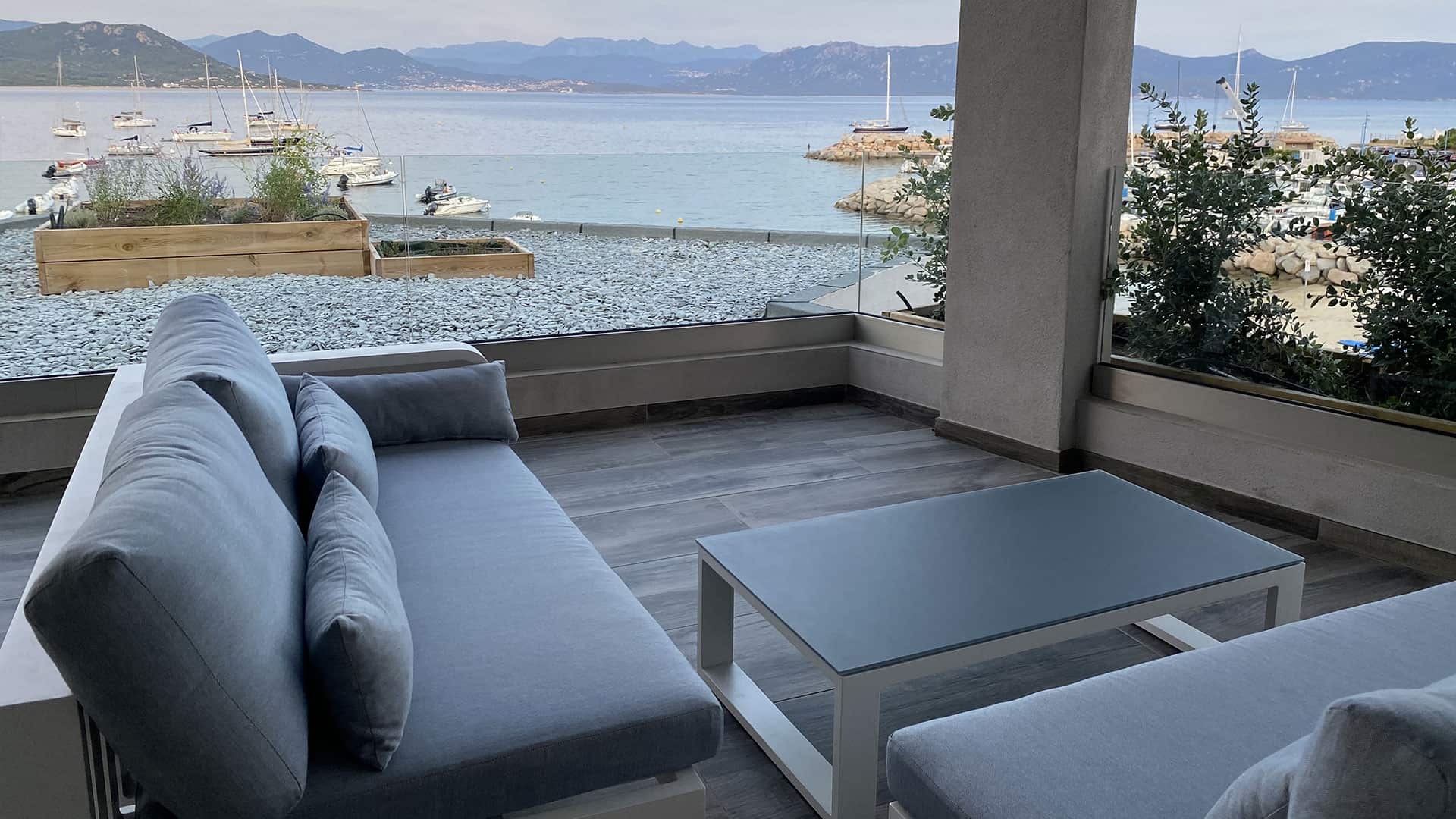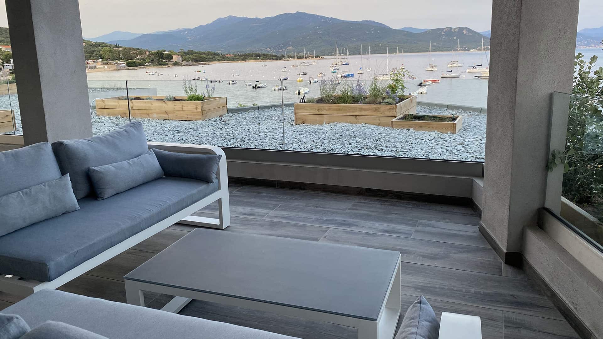 Progettata in modo eccellente, la sua terrazza offre una vista panoramica sul Golfo. Tranquillamente seduti nel vostro salotto all’aperto, il vostro sguardo non incontrerà altro che le onde che solleticano le rive del Golfo di Valinco.